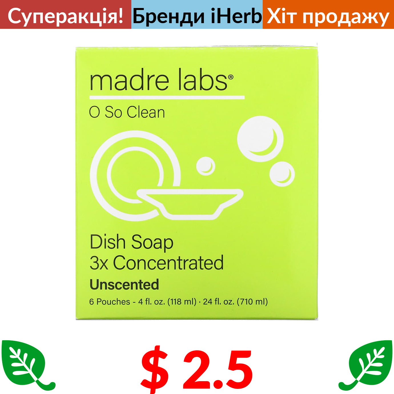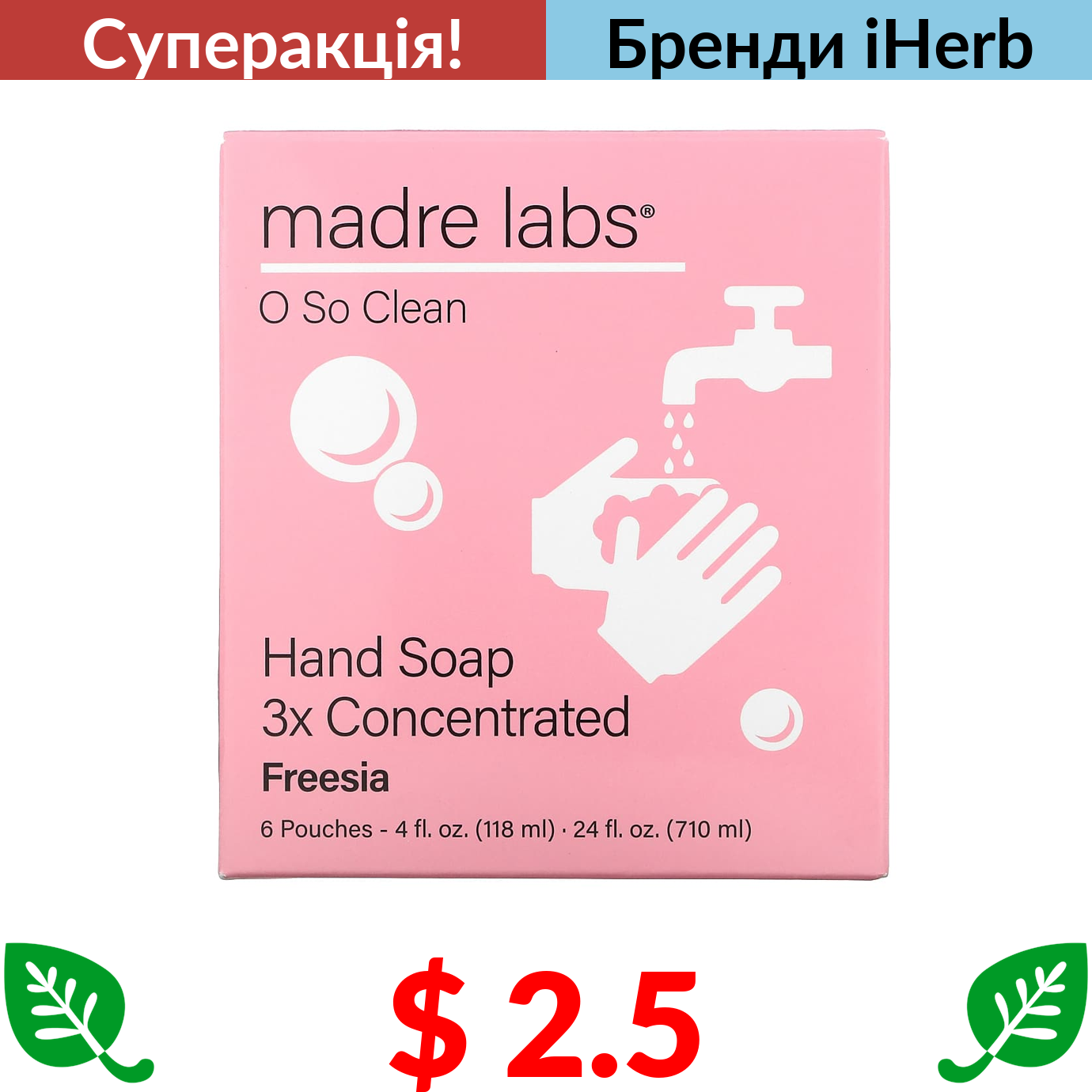 $ 2.5 Madre Labs, мило для рук, потрійний концентрат, фрезія, 6 пакетиків по 118 мл (4 унції)