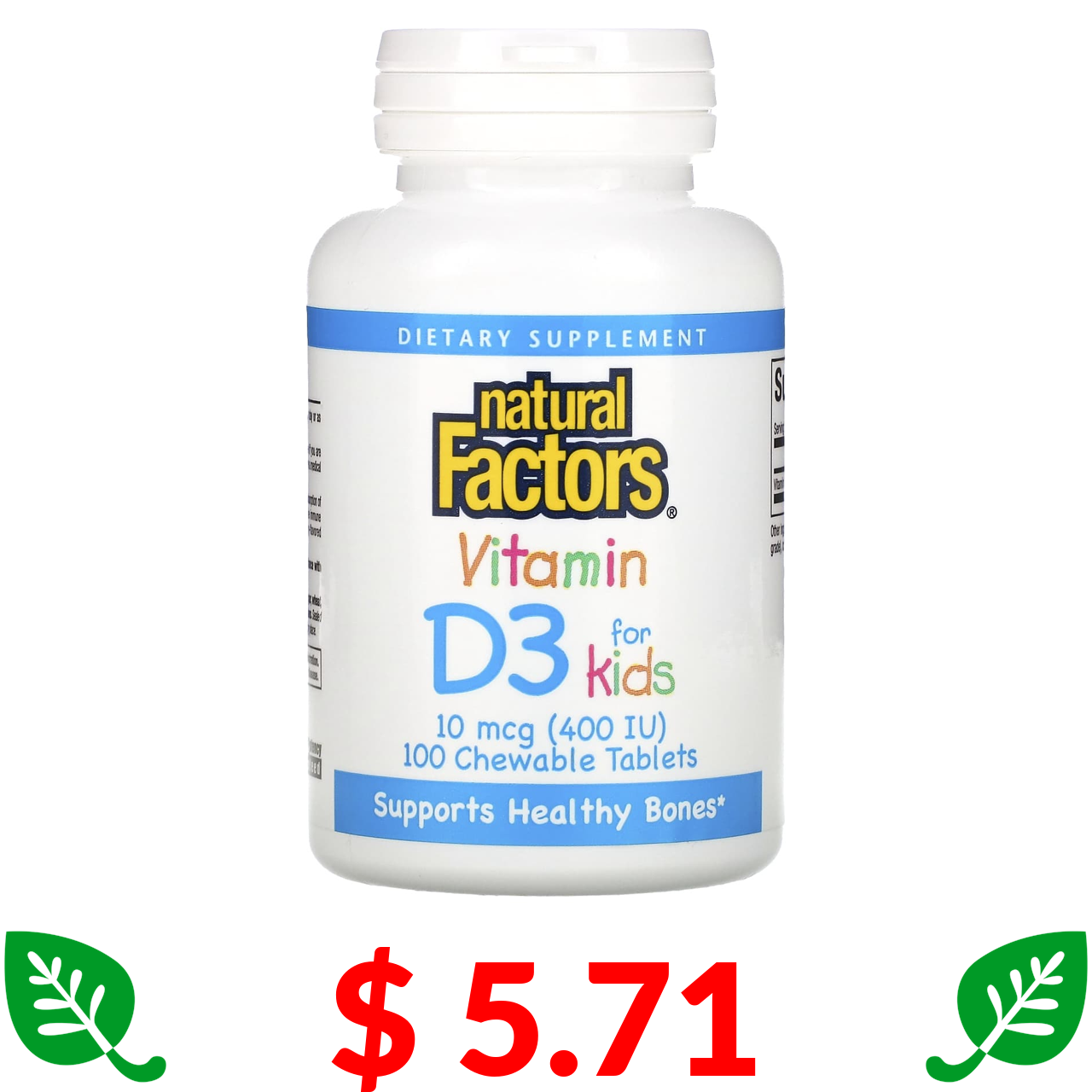 $ 5.71 Natural Factors, вітамін D3, зі смаком полуниці, 10 мкг (400 МО), 100 жувальних таблеток