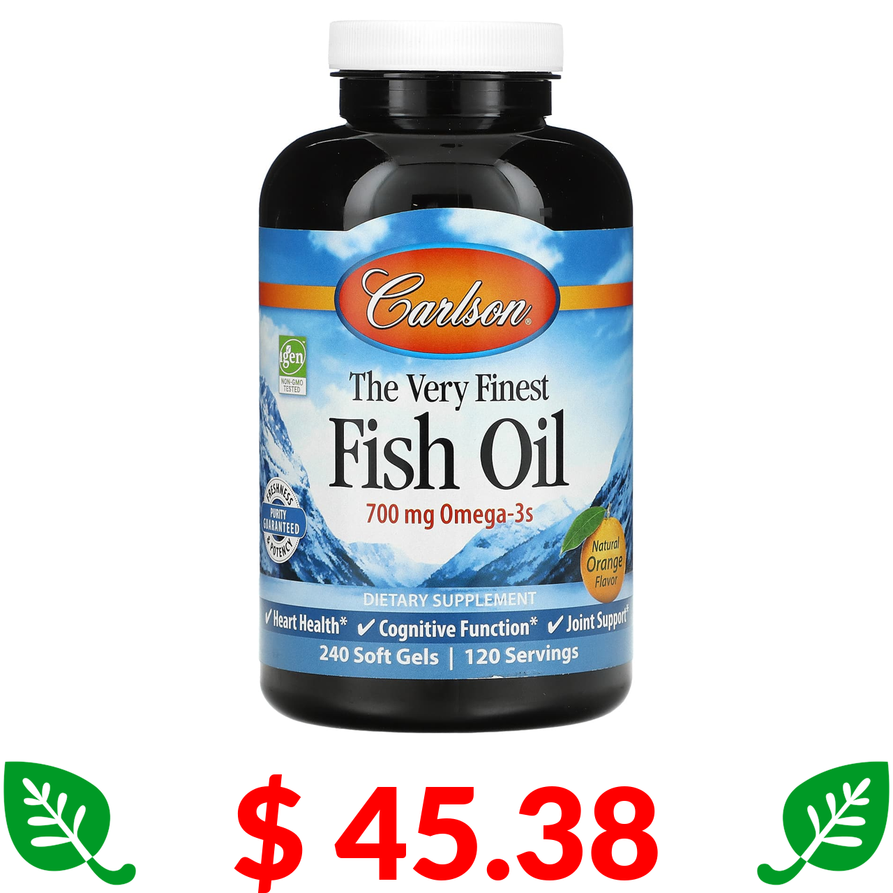 $ 45.38 Carlson, найкращий риб’ячий жир, натуральний апельсиновий смак, 350 мг, 240 капсул