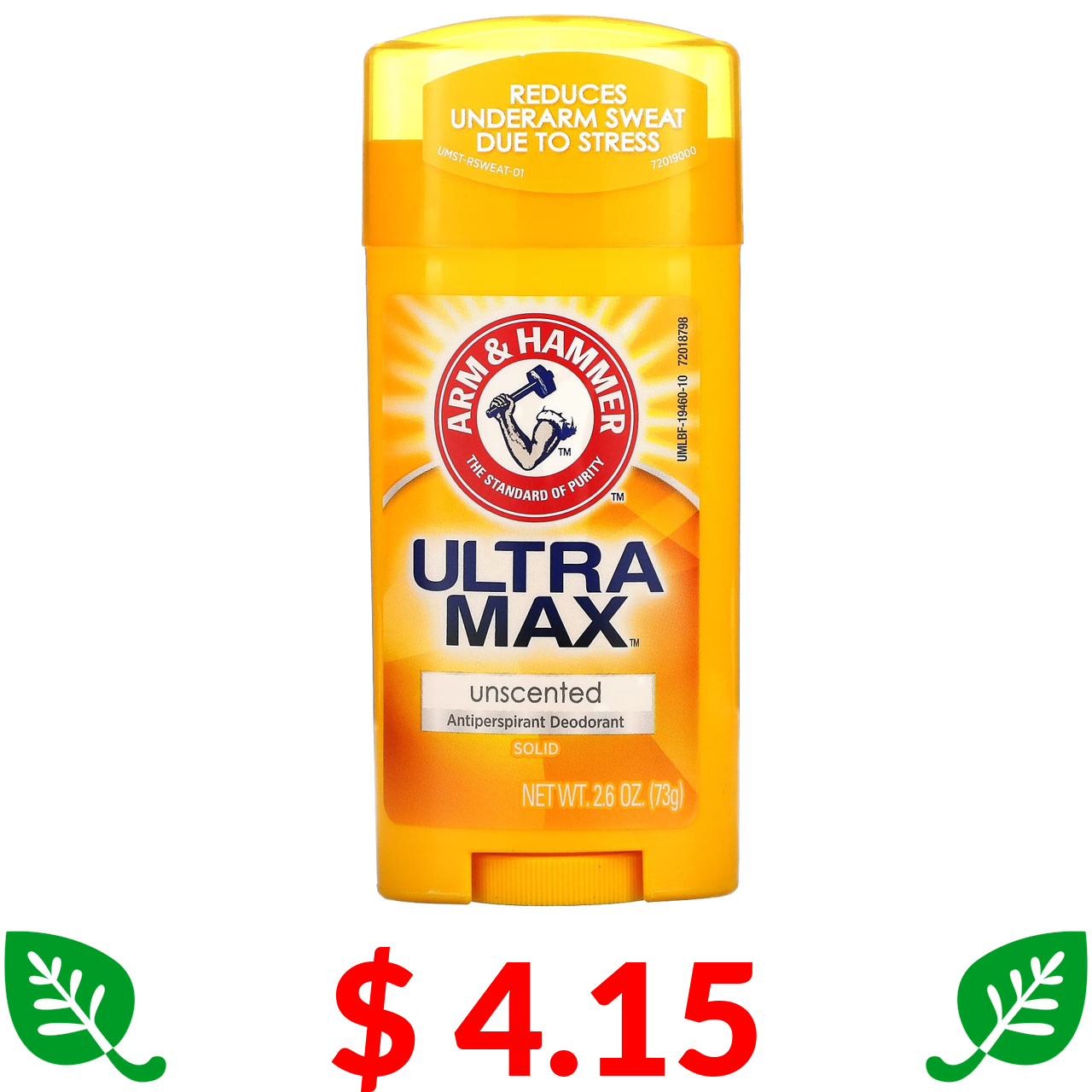 $ 4.15 Arm & Hammer, UltraMax, твердий дезодорант-антиперспірант, без запаху, 73 г (2,6 унції)