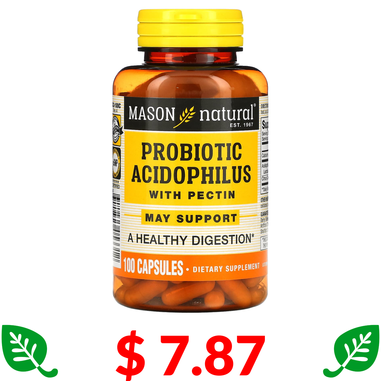 $ 7.87 Mason Natural, пробіотик з ацидофільними лактобактеріями Acidophilus і пектином, 100 капсул