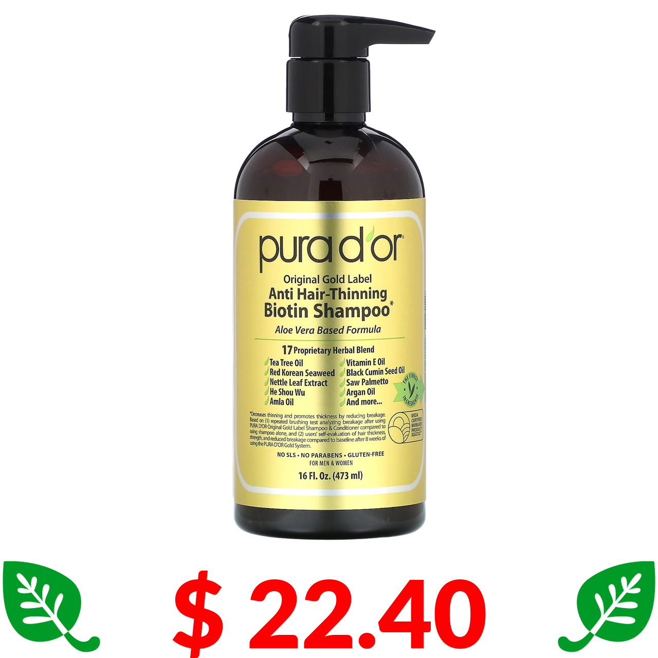 $ 22.40 Pura D'or, шампунь проти випадіння волосся, 473 мл (16 рідк. унцій)