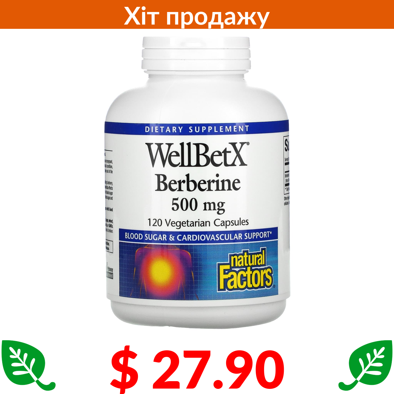 $ 27.90 Natural Factors, WellBetX, берберин, 500 мг, 120 вегетаріанських капсул