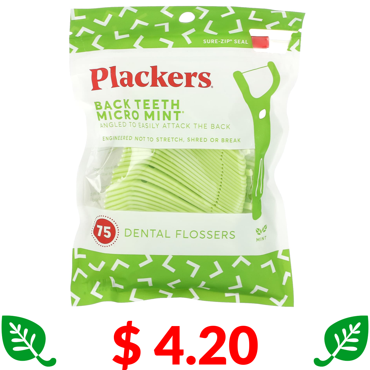 $ 4.20 Plackers, Зубна нитка Micro Mint для задніх зубів, зубні нитки, м’ята, 75 шт