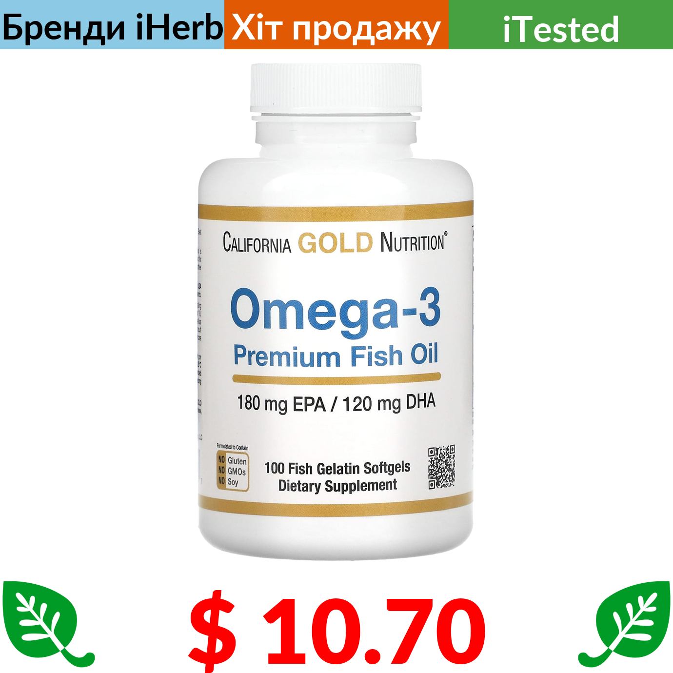 Лише $11.9 - Комбопропозиція (економія $3.0) купуйте разом з California Gold Nutrition, омега-3, риб’ячий жир преміальної якості, 180 мг ЕПК / 120 мг ДГК, 100 капсул із риб’ячого желатину