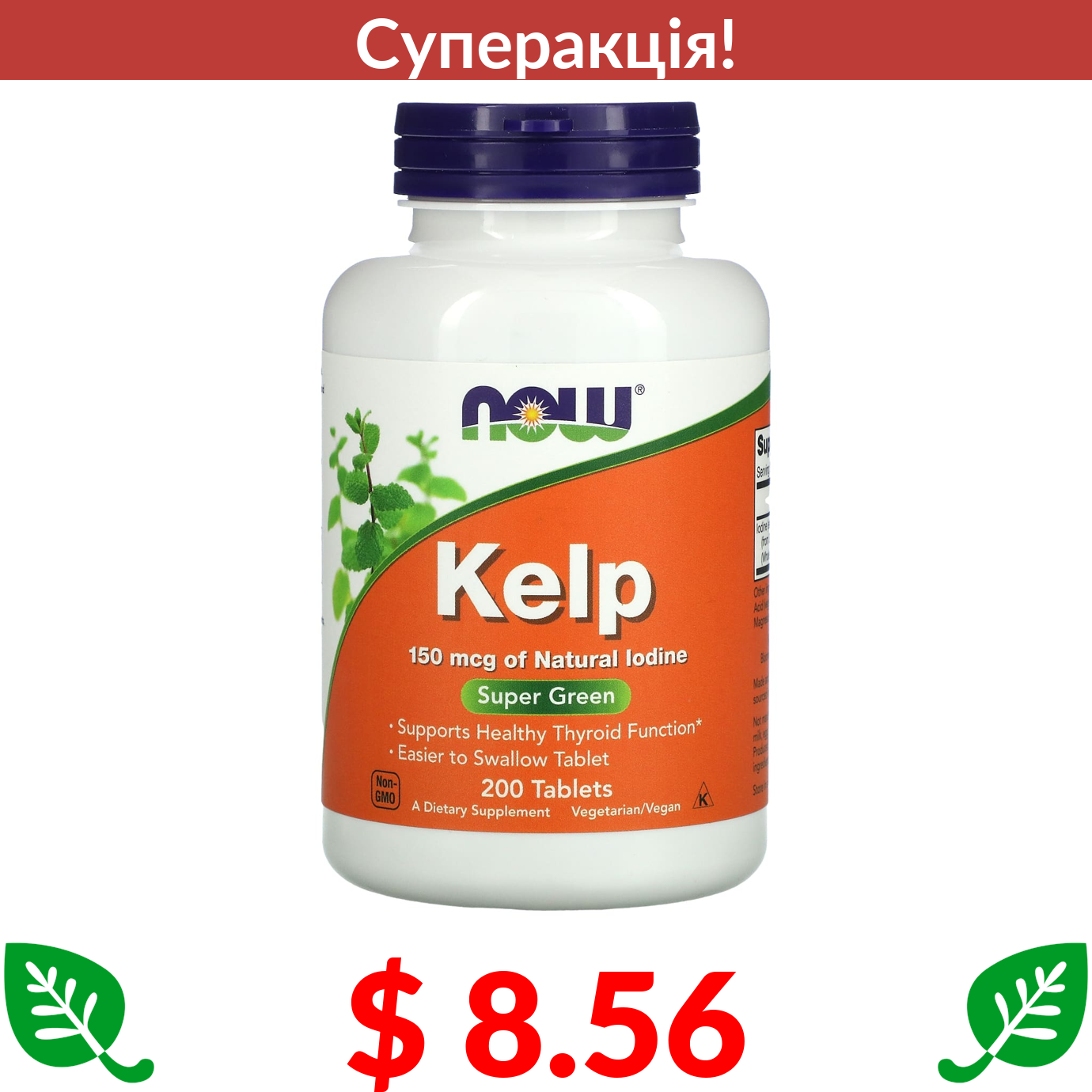$ 8.56 Now Foods, бурі водорості, 150 мкг, 200 таблеток