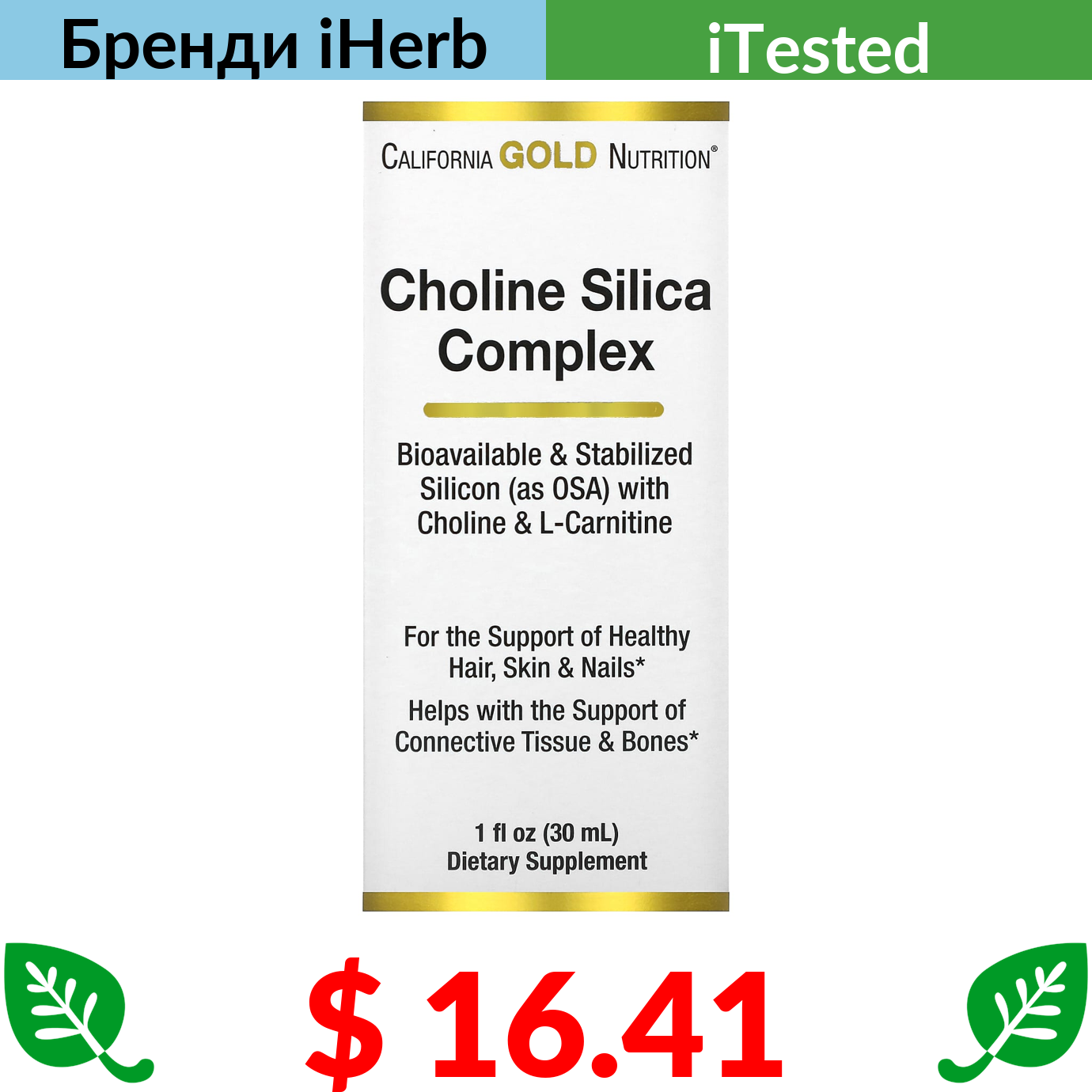 $ 16.41 California Gold Nutrition, холіновий і кремнієвий комплекс, біодоступний колаген для підтримки волосся, шкіри та нігтів, 30 мл (1 рідк. унція)
