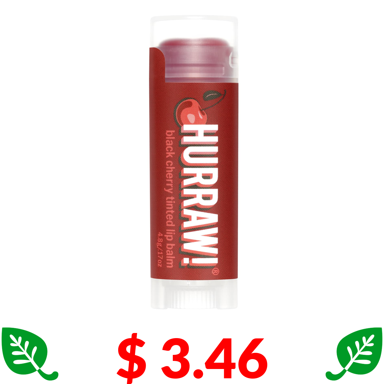 $ 3.46 Hurraw!, Відтіночний бальзам для губ, чорна вишня, 4,8 г (17 унцій)