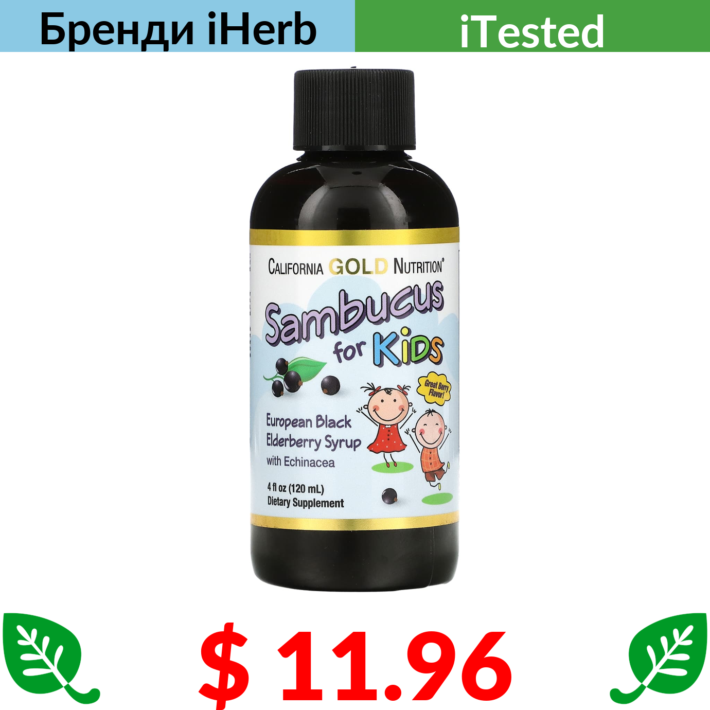 $ 11.96 California Gold Nutrition, бузина для дітей, сироп з європейської чорної бузини з ехінацеєю, 120 мл (4 рідк. унції)