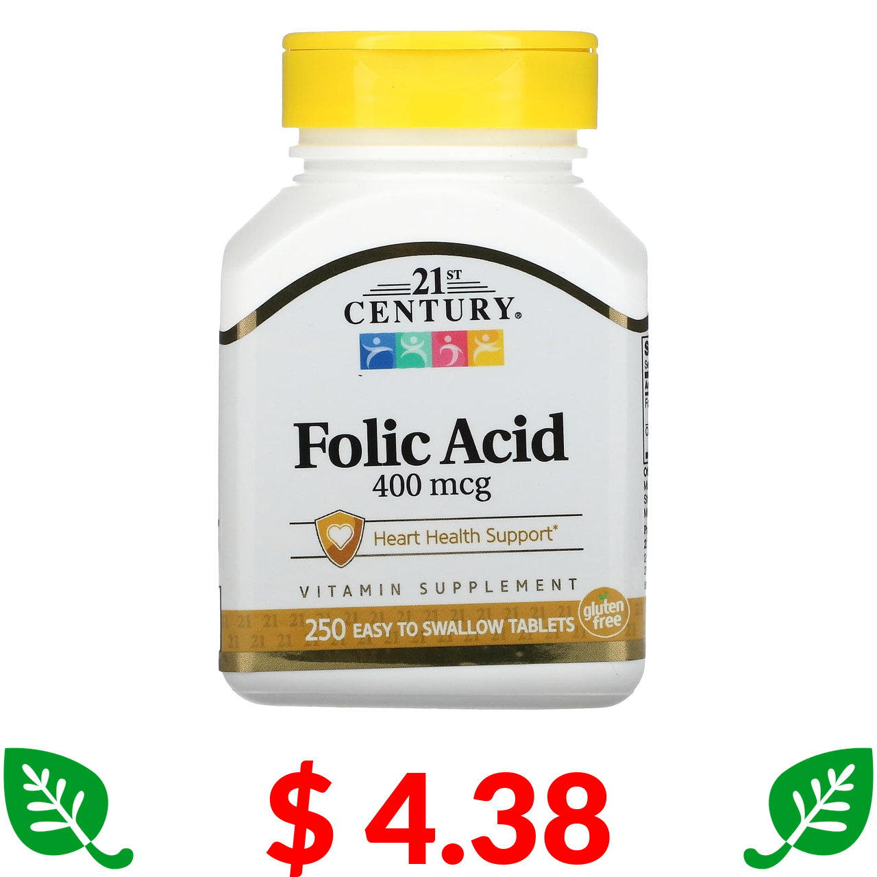 $ 4.38 21st Century, фолієва кислота, 400 мкг, 250 таблеток, які легко ковтати