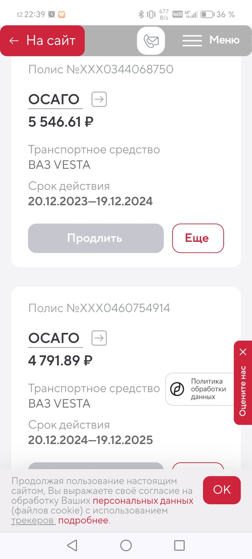 фастрахование замена полиса