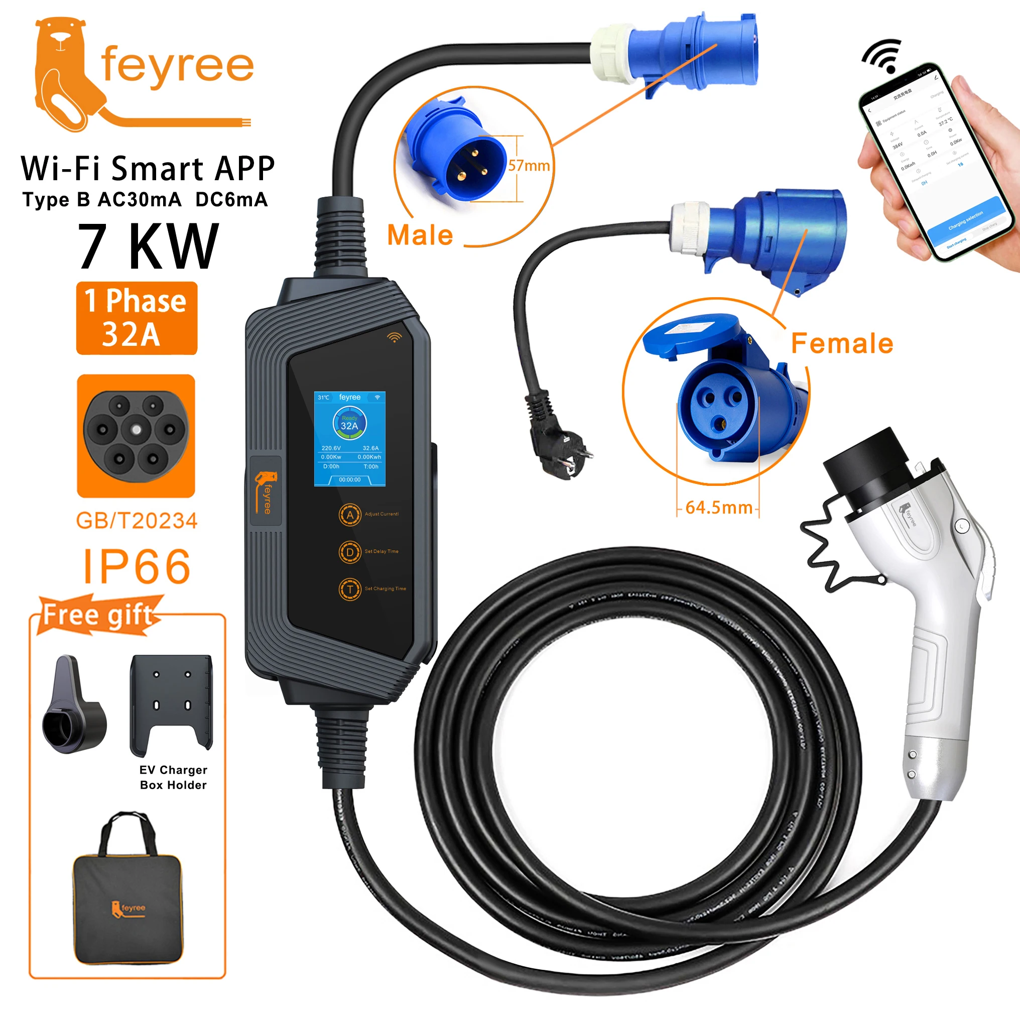wEkdFawxHere you can buy feyree 7KW 32A Adjustable EV Charger GBT Socket APP Bluetooth Version Set Charging Time EVSE Charging Box for Electric Vehicle with free delivery to your post office.