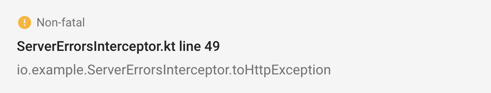 Так что опираться придётся на свои наблюдения. А наблюдения и DevRel Crashlytics говорят, что исключения группируются по полному имени метода и номеру строки. Важно, что полное имя метода включает в себя пакет и имя класса.
