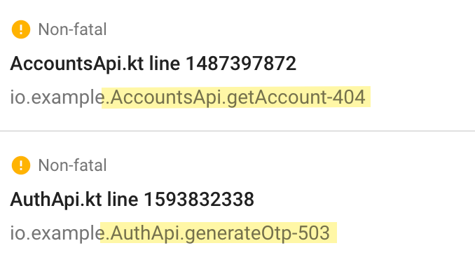 Недавно на работе прилетела интересная задачка - поправить группировку сетевых ошибок в Crashlytics. Нужно сделать, чтобы было понятно какой именно метод API упал. Вопрос почему это понадобилось делать со стороны приложения предлагаю оставить за скобками и сразу перейти к задаче :)