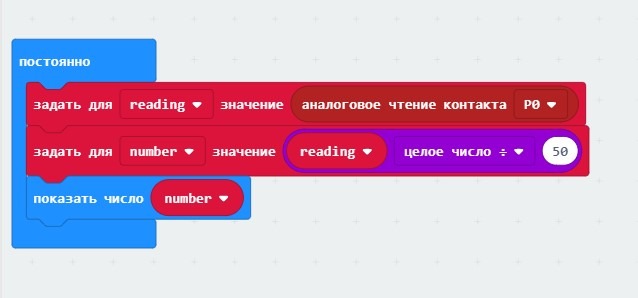 Какой бы язык вы не использовали для программы измерения уровня освещенности, все будет следовать этой базовой схеме. Напряжение будет считываться с контакта 2, а затем масштабироваться для получения числа от 0 до 9, которое будет отображаться на светодиодном дисплее micro: bit.