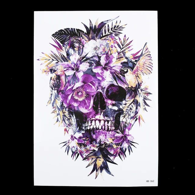 Kiamoo Art Design Store Best Offers 1 PC Waterproof Fake Temporary Tattoo Sticker HB362 Purple Flower Death Skull Body Shoulder Art Tattoo For Women Men, High Quality Temporary Tattoos from Kiamoo Art Design StoreQR Code