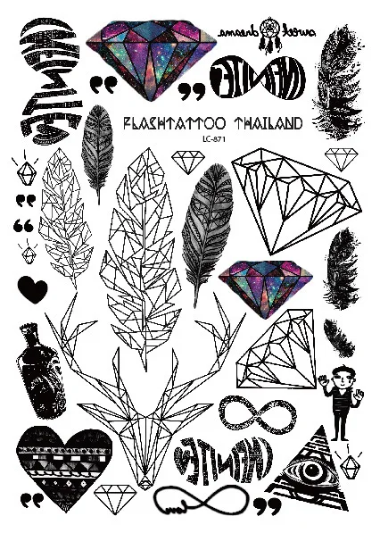 Temporary Tattoos: 1pcs Waterproof Tattoo Stickers Colored Diamond Fashion Sexy Chest Feathers Female Temporary Tattoo Stickers .