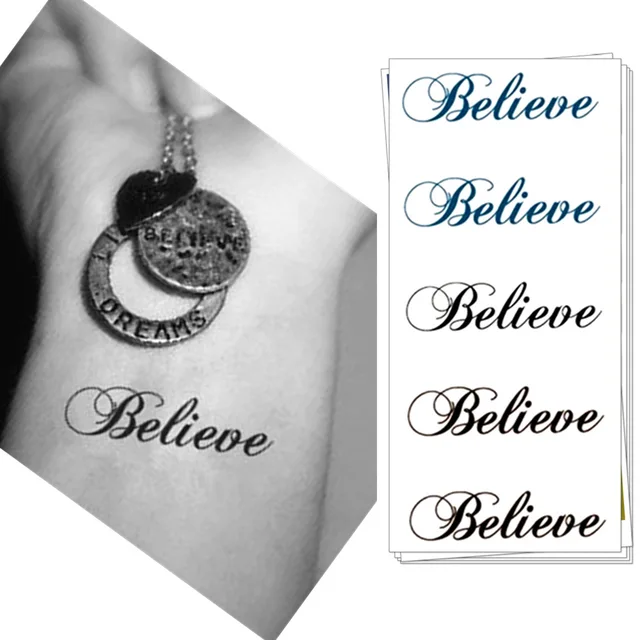 MTheory Arts & Designs Store Hot English Words Believe Flash Tattoo Hand Sticker 10.5x6cm Waterproof Henna Selfie Tatoo Fake Temporary Body Art Tattoo Sticker, High Quality Temporary Tattoos from MTheory Arts & Designs StoreQR Code