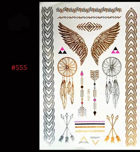 SQWUYONG-tattoo Store Big Discount Gold Silver Metal Waterproof Henna Tattoos Female Golden Wings Arrow Temporary Tattoos, High Quality Temporary Tattoos from SQWUYONG-tattoo StoreQR Code