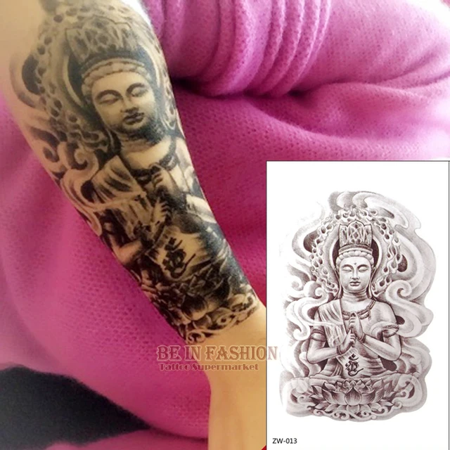 BE IN FASHION Big SALE 1pc Armband Temporary Tattoo Women Buddha Designs Waterproof Fake Tatoo Sticker Buddhist Arm Shoulder Shank Chest For Men ZW013, High Quality Temporary Tattoos from BE IN FASHIONQR Code