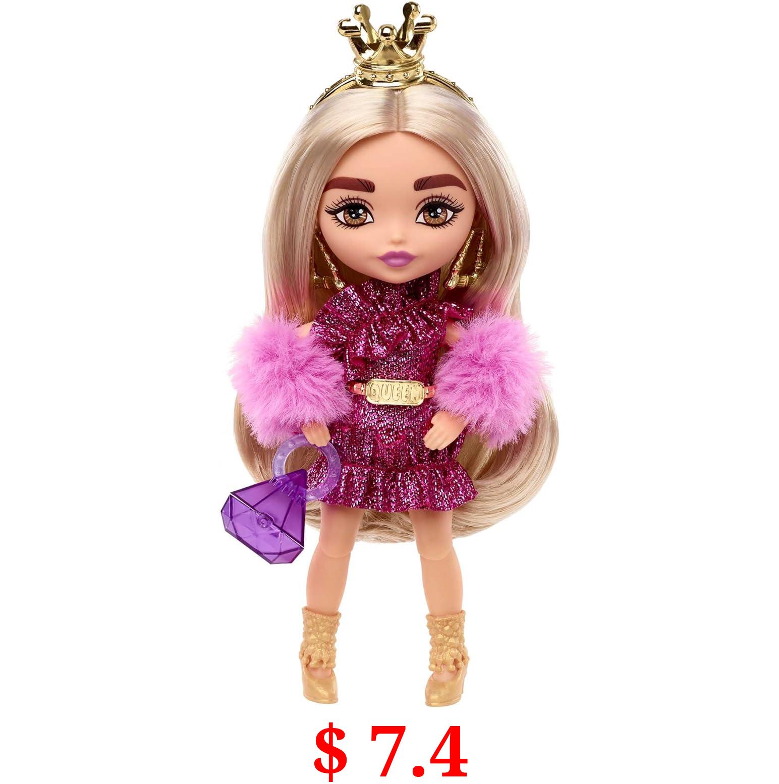 $ 7.4 Barbie Extra Minis Doll & Accessories with Blonde Hair, Toy Pieces Include Shimmery Dress & Furry Shrug