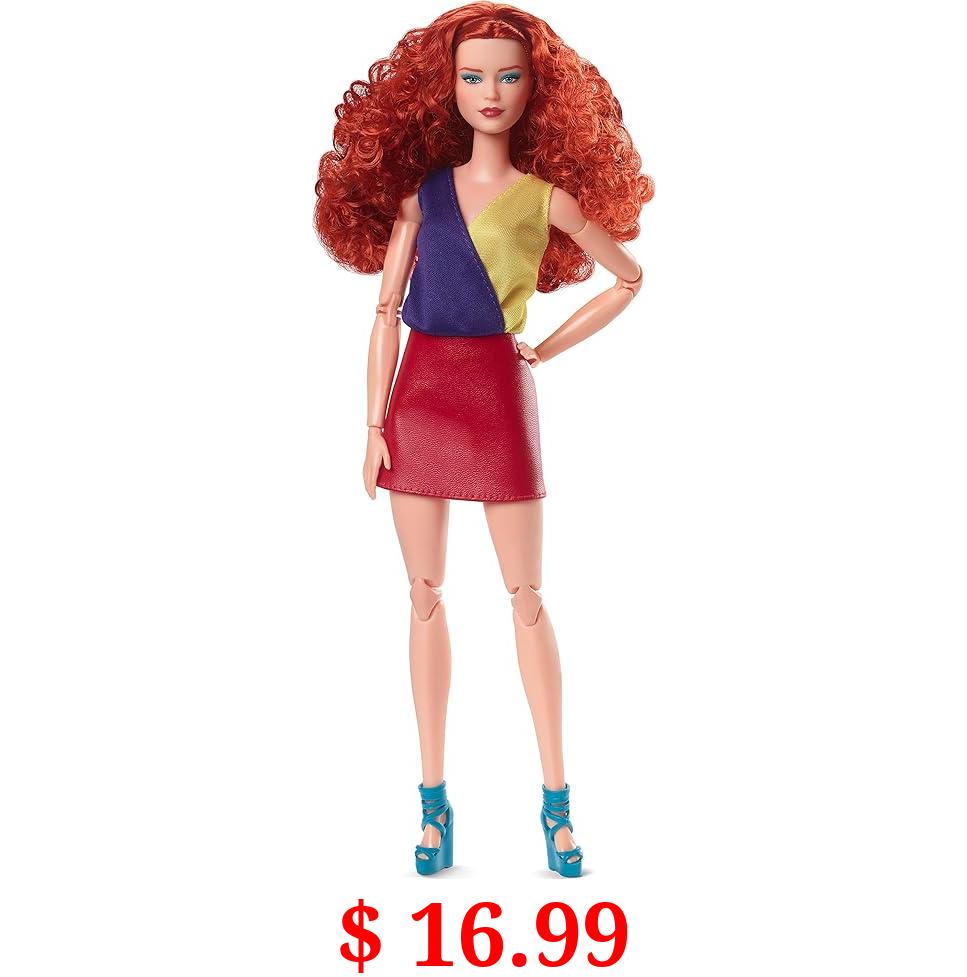$ 16.99 Barbie Looks Doll with Curly Red Hair Dressed in Color Block Top and Glossy Pleather Skirt, Posable Made to Move Body