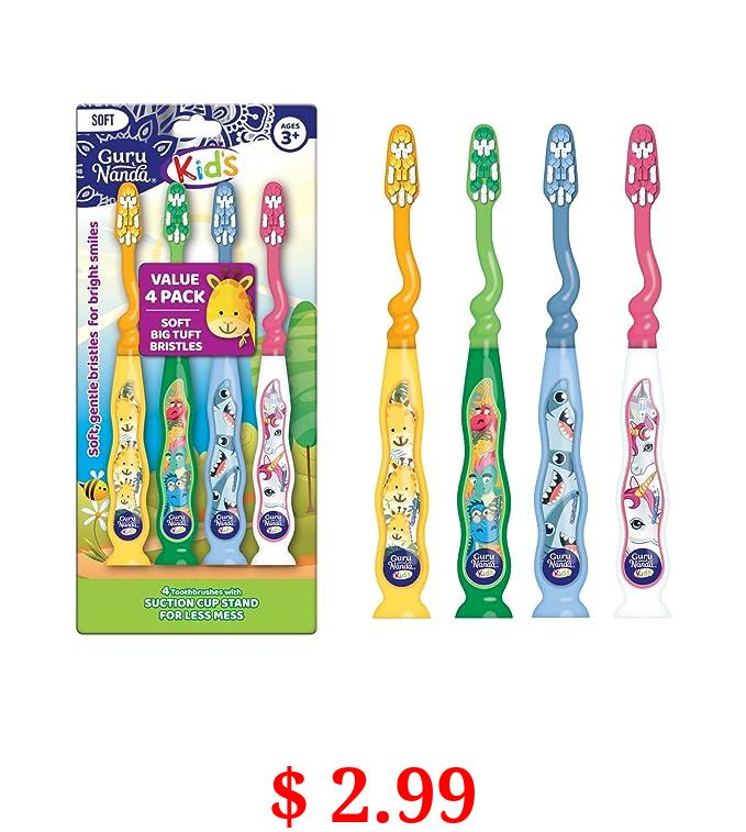 $ 2.99 GuruNanda Kids Toothbrush with Suction Cup & Fun Animal Designs - Soft Bristles for Healthy Gums- Non-Slippery & Mess-Free Toothbrush, 3+ Age- 4 Count
