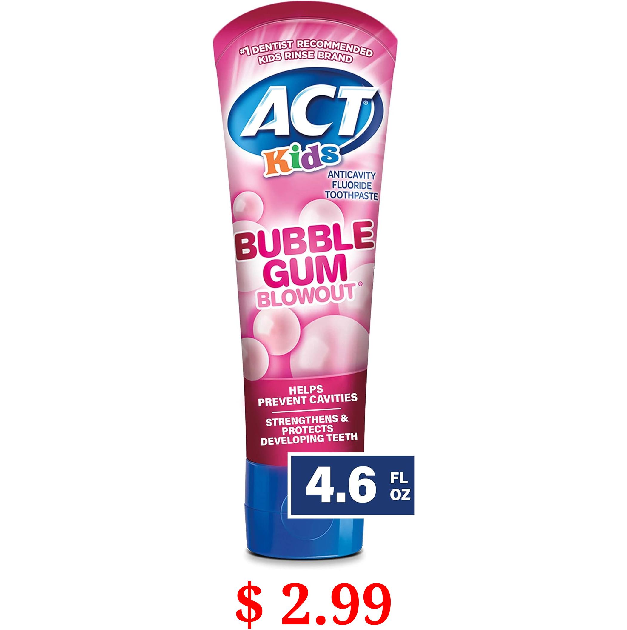 $ 2.99 ACT Kids Anticavity Fluoride Toothpaste 4.6 oz. Bubble Gum Blowout