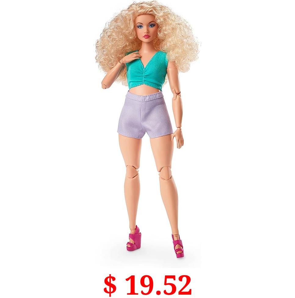 $ 19.52 Barbie Looks Doll with Curly Blonde Hair Dressed in Ruched Crop Top & Satiny Lavender Shorts, Posable Made to Move Body