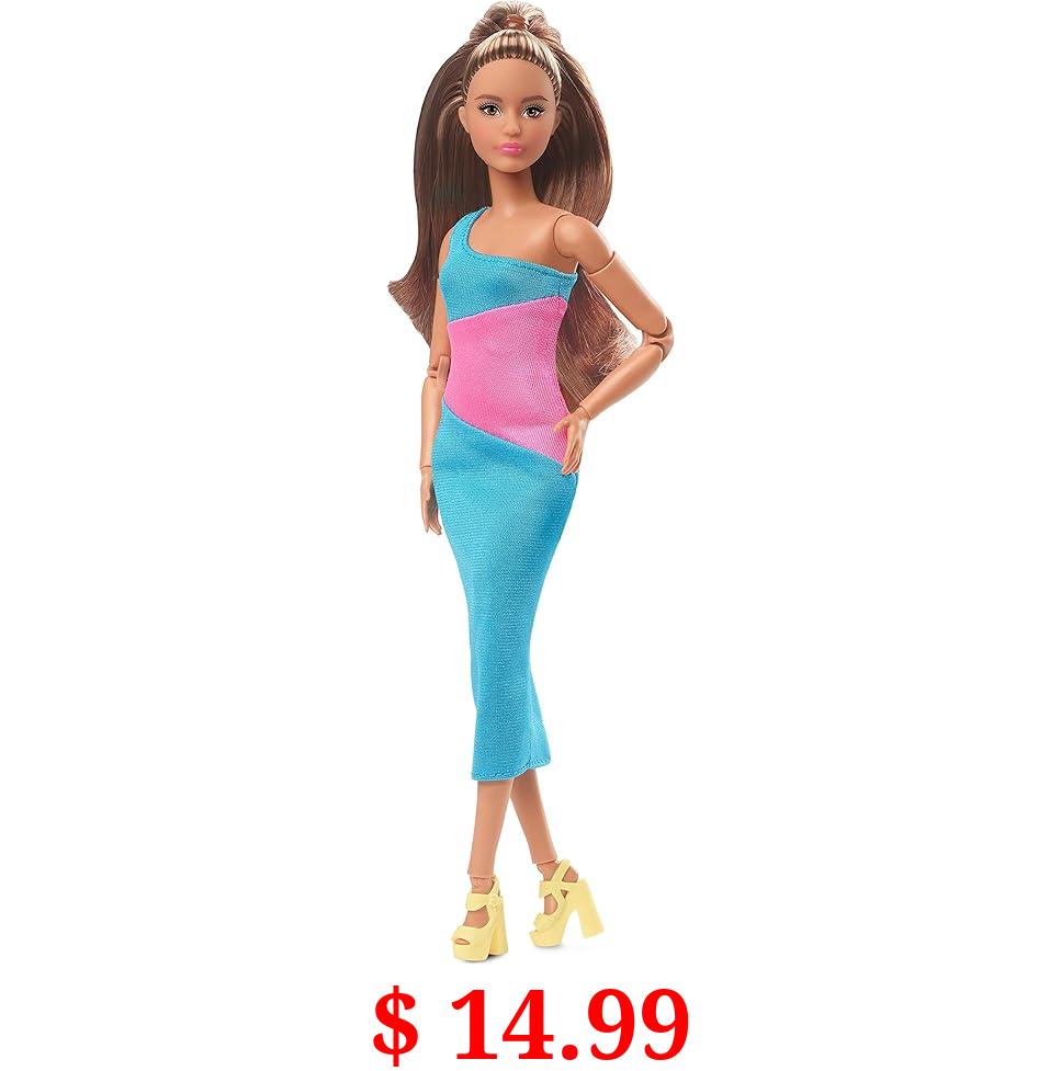 $ 14.99 Barbie Looks Doll with Brown Hair Dressed in One-Shoulder Pink and Blue Midi Dress, Posable Made to Move Body