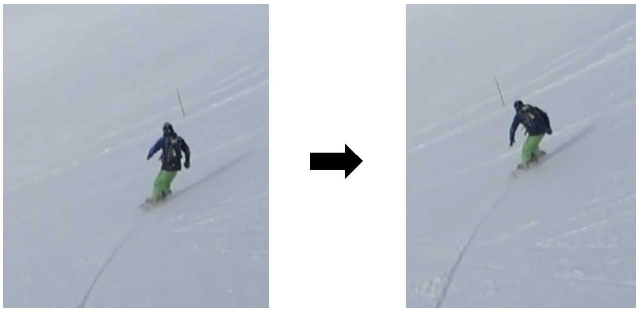Перекантовка. 4-7 секунды (на видео 11) – смена канта без проскальзывания и сразу выпрямление внутрь поворота, без предварительного касания склона рукой. Рука кладется на склон тогда, когда доска будет поставлена на достаточный угол закантовки. И кладется она из-за этого угла закантовки, а не "для него". Дальше рука используется, как "датчик" поверхности, чтобы не шлепнуться телом на склон, потому что в таком случае вес уйдет с доски, её раскантует и сорвёт. В оригинальном видео есть момент, где Patrice слишком сильно забросил тело и шлепнулся об склон, доска тогда побрыкалась и снова закантовалась, так как позиция райдером была принята и сохранена верная.