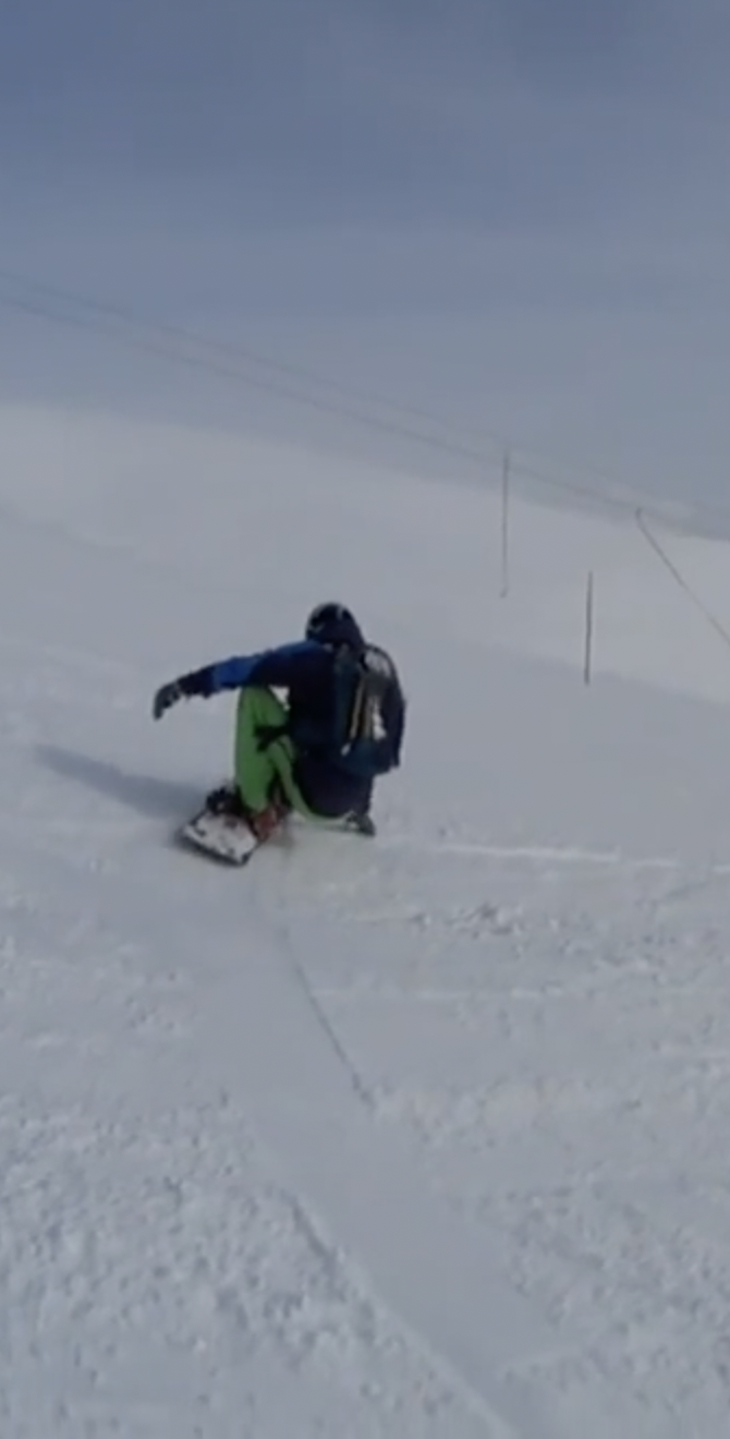 2) Всё это время пока она проскальзывала Максим "мощно сгибал ноги", но делал он это НАД доской, пока она проскальзывала, когда в оригинале сгиб ног инициирует перекантовку и он не "мощный".