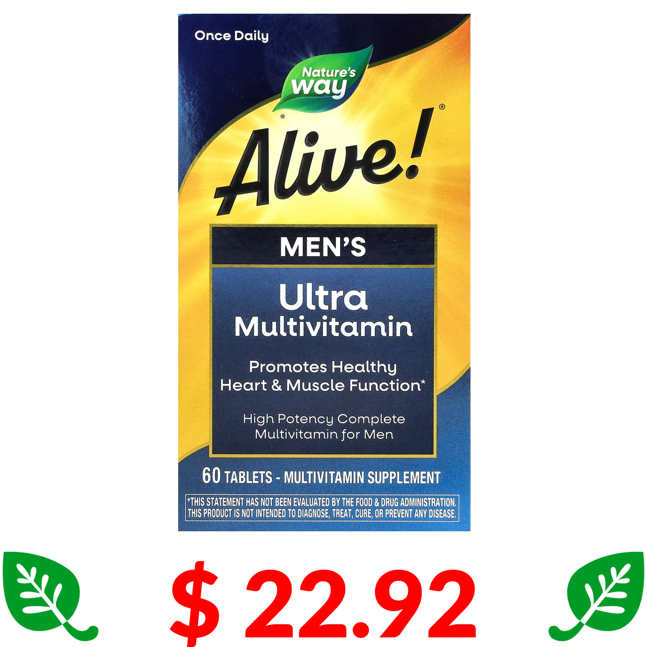 $ 22.92 Nature's Way, Alive!, ультрамультивітаміни для чоловіків, 60 таблеток