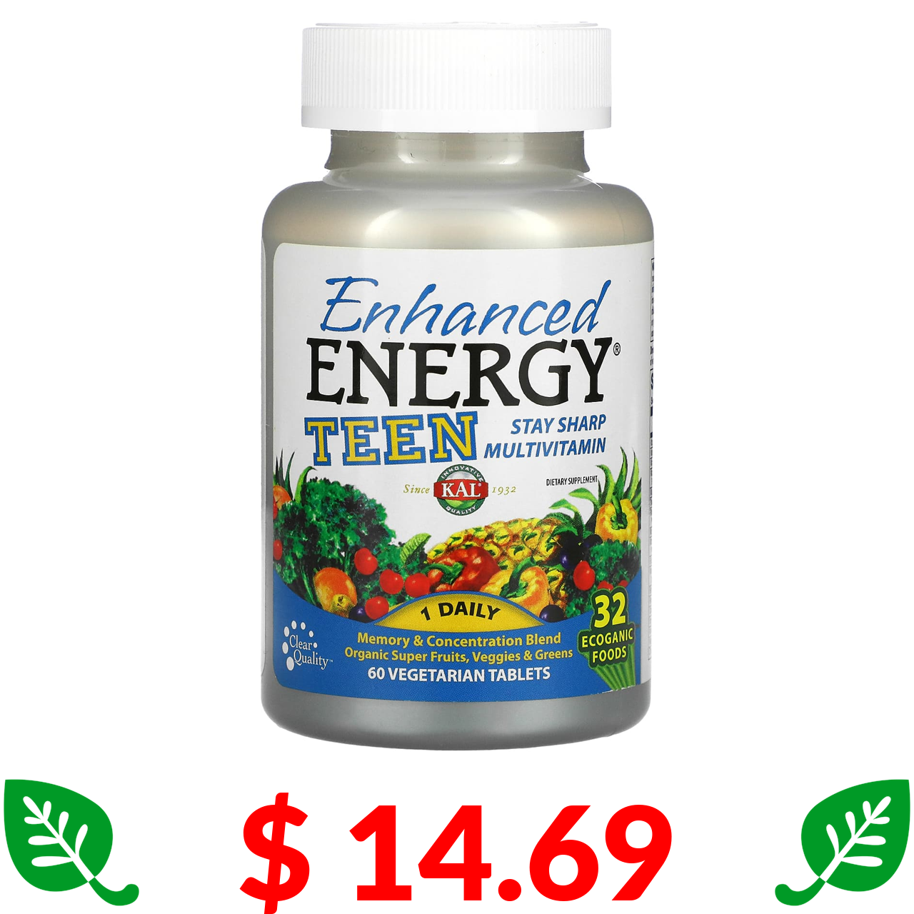 $ 14.69 KAL, Enhanced Energy, суміш для покращення пам'яті й концентрації, для підлітків, 60 рослинних таблеток