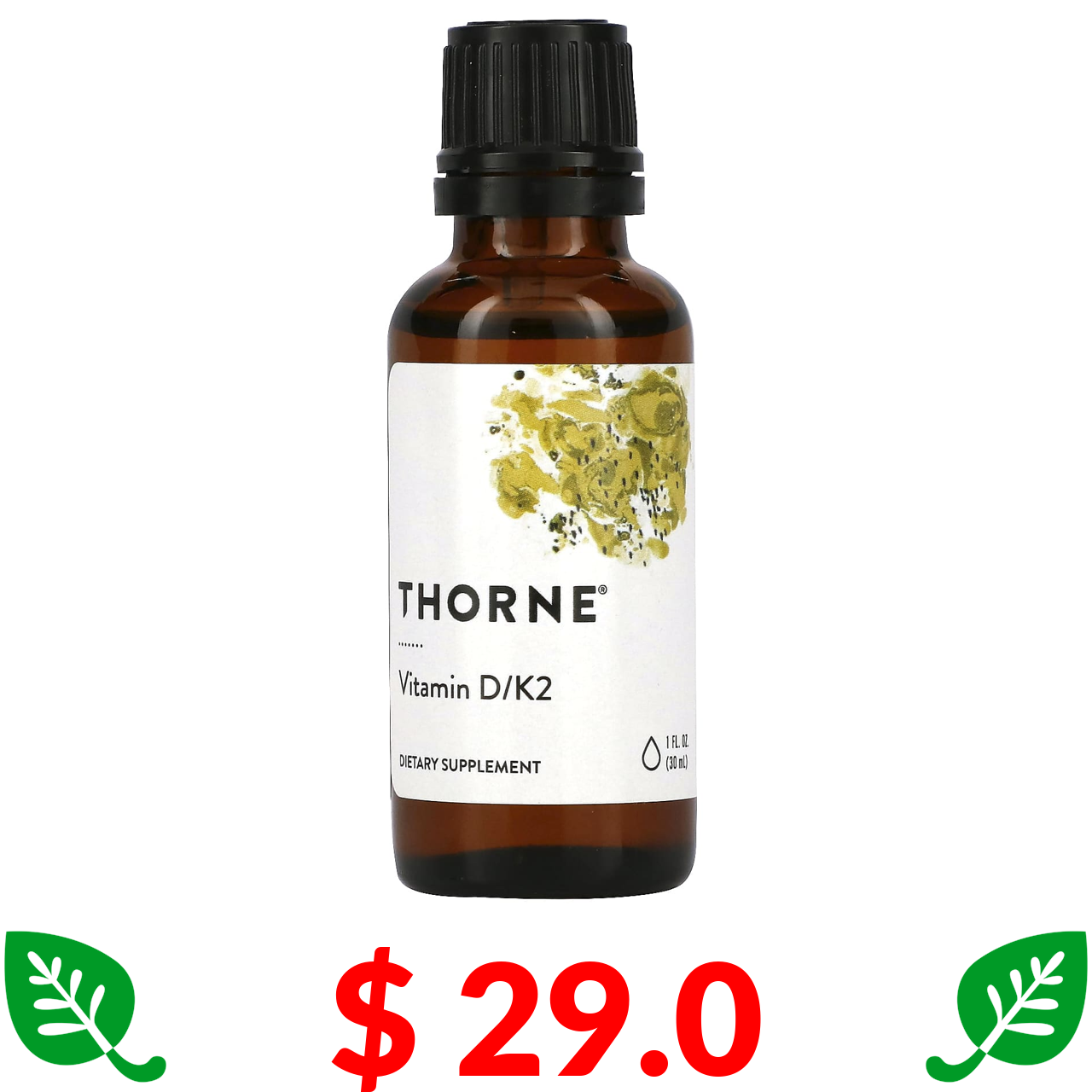 $ 29.0 Thorne, вітамін D з вітаміном K2, 25 мкг (1000 МО), 30 мл (1 рідк. унція)