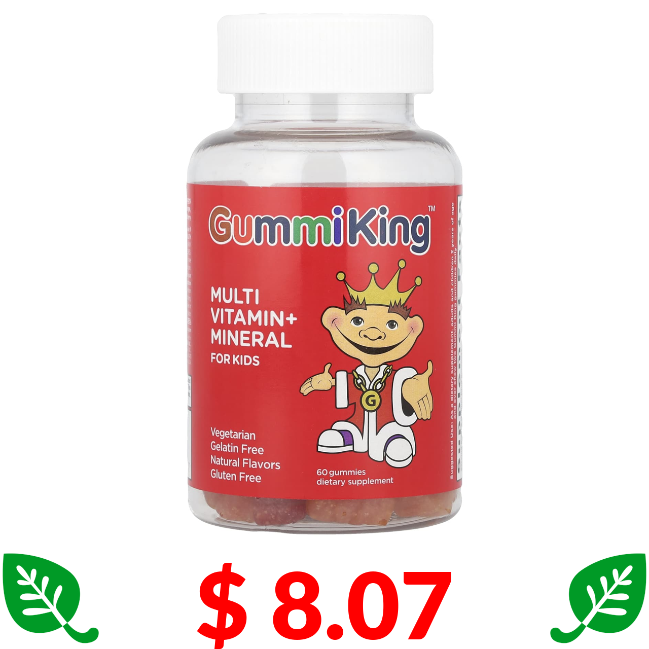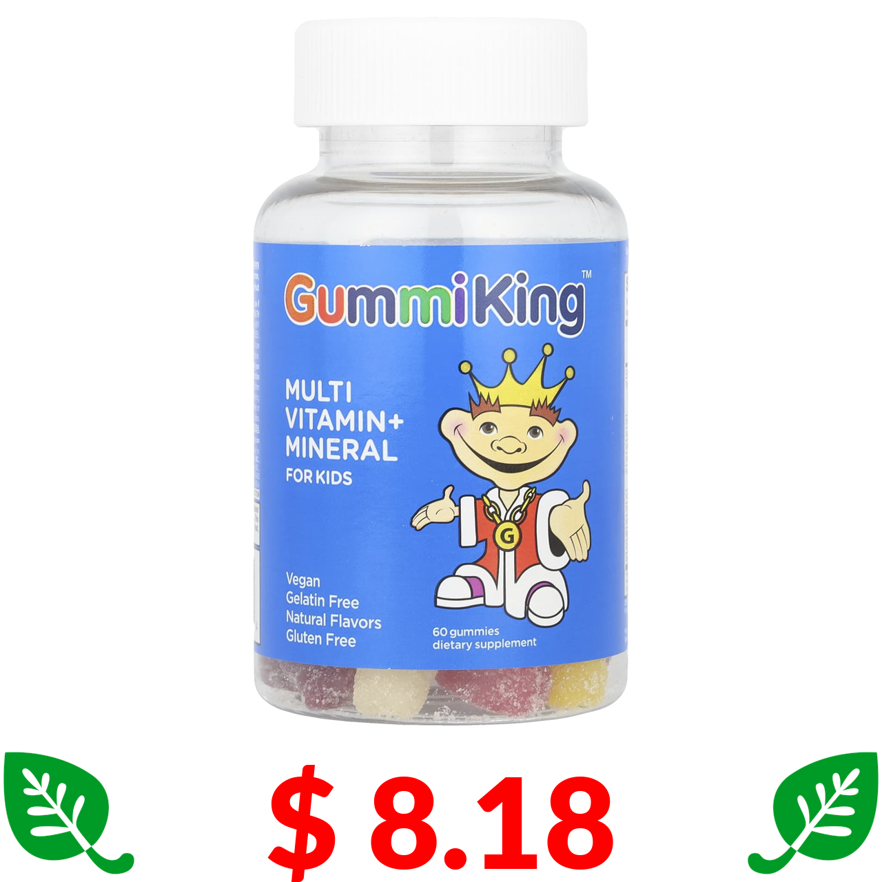 $ 8.18 GummiKing, мультивітаміни та мінерали для дітей, полуниця, апельсин, лимон, виноград, вишня та грейпфрут, 60 жувальних мармеладок