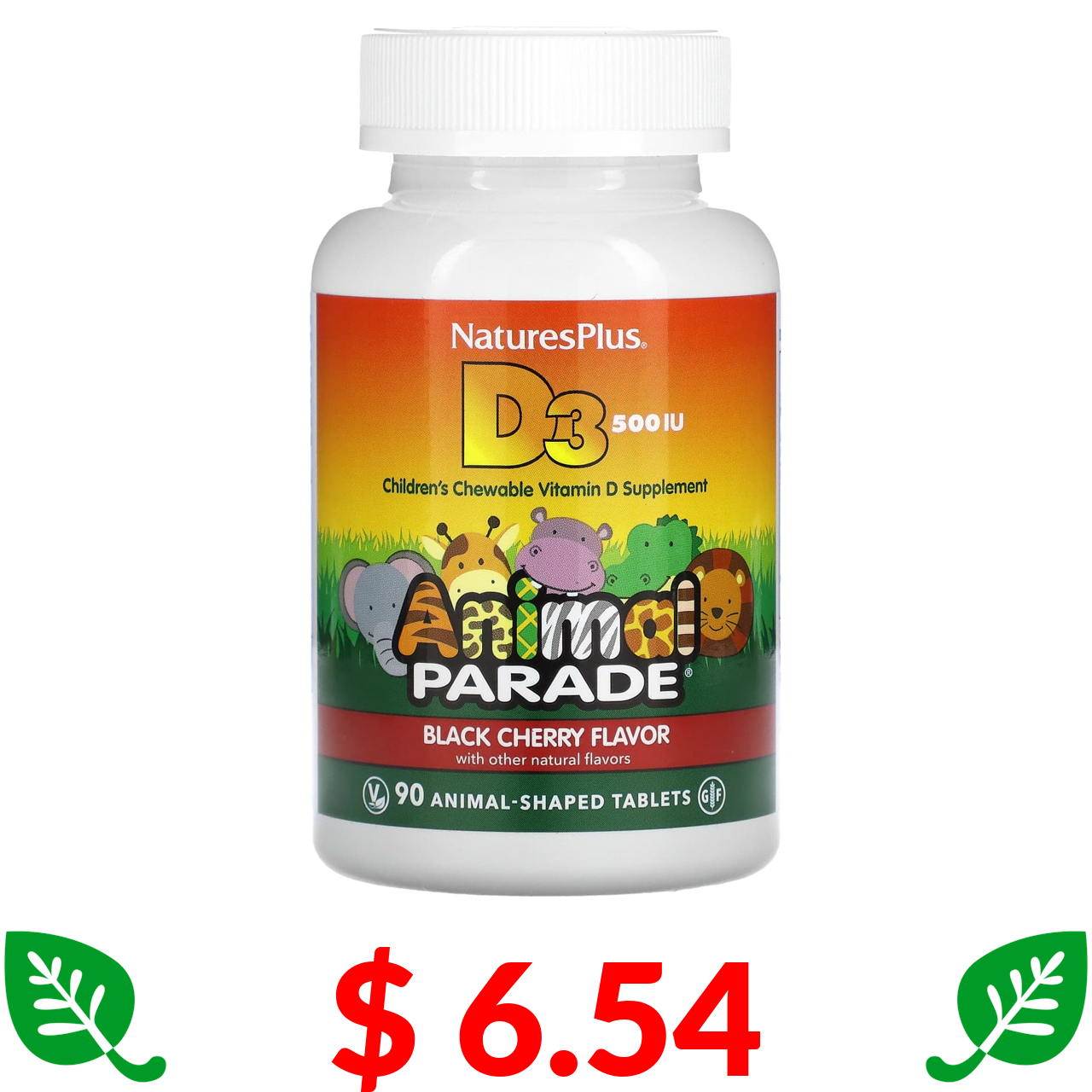 $ 6.54 Nature's Plus, Source of Life, Animal Parade, вітамін D3, смак чорної вишні, 500 МО, 90 таблеток у формі тварин