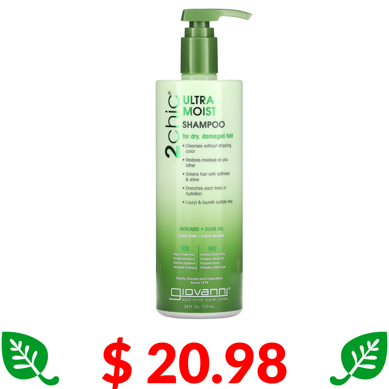 $ 20.98 Giovanni, 2chic, ультразволожувальний шампунь для сухого, пошкодженого волосся, авокадо та оливкова олія, 710 мл (24 рідк. унції)