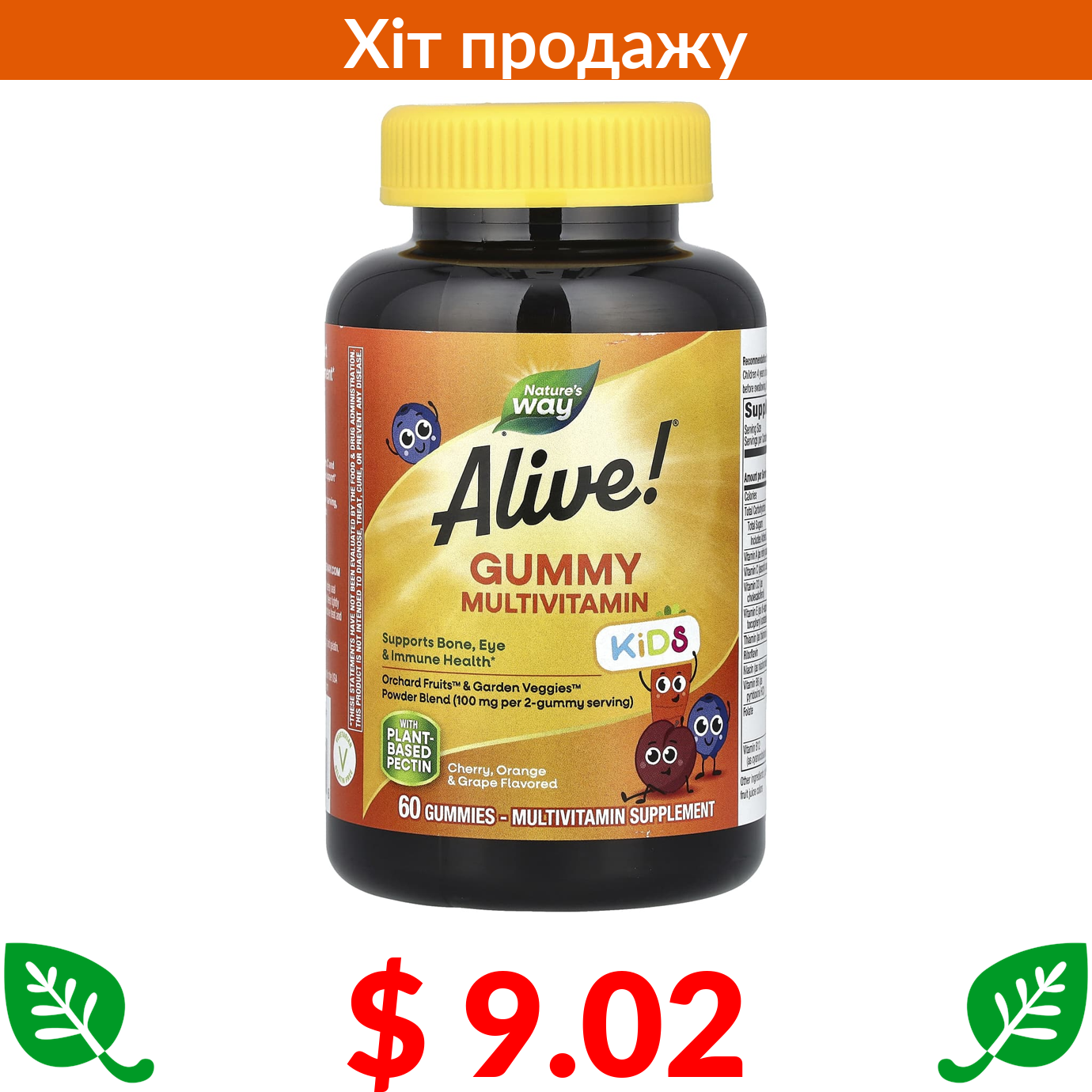 $ 9.02 Nature's Way, Alive! мультивітаміни для дітей, вишня, апельсин і виноград, 60 жувальних мармеладок