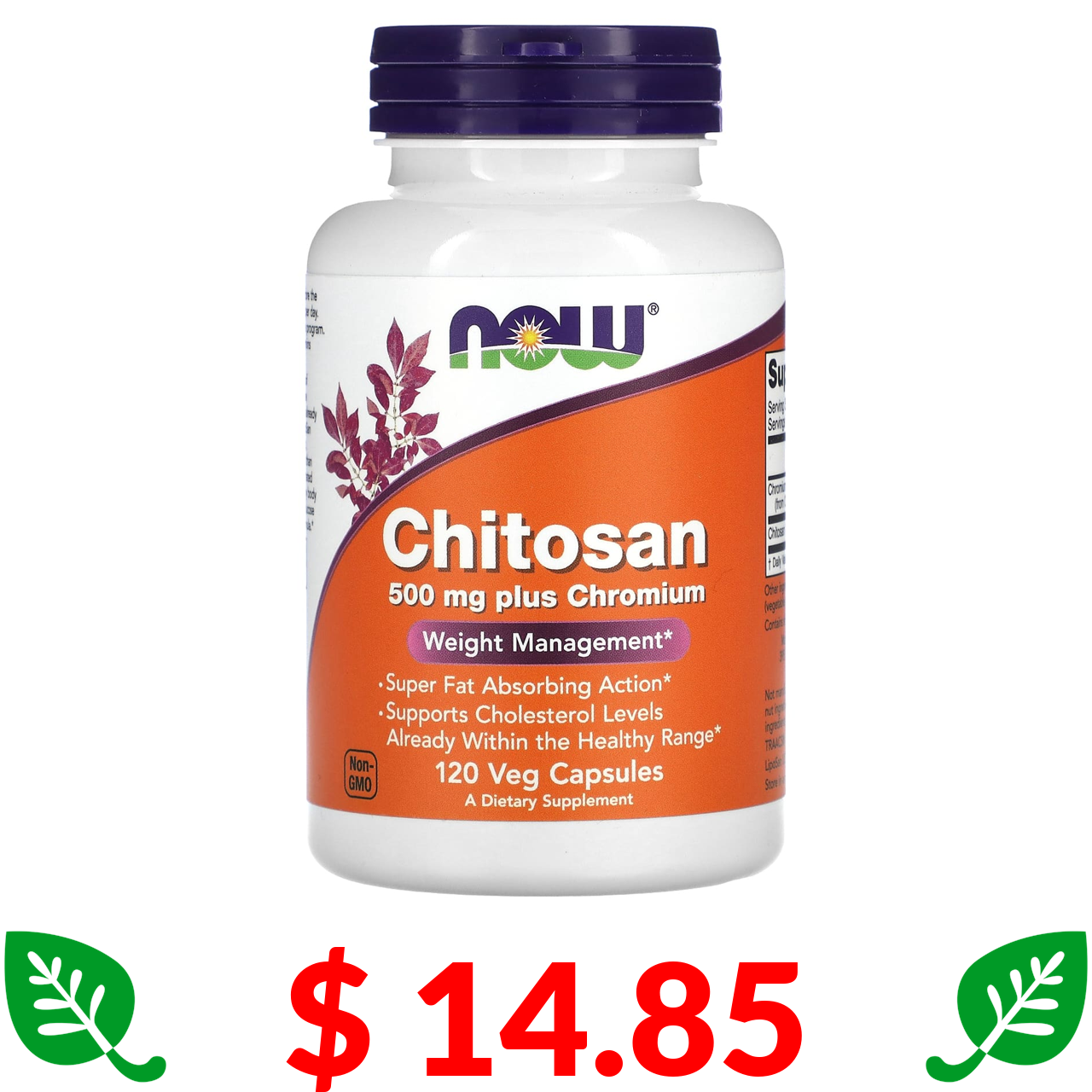 $ 14.85 Now Foods, хітозан з хромом, 500 мг, 120 вегетаріанських капсул