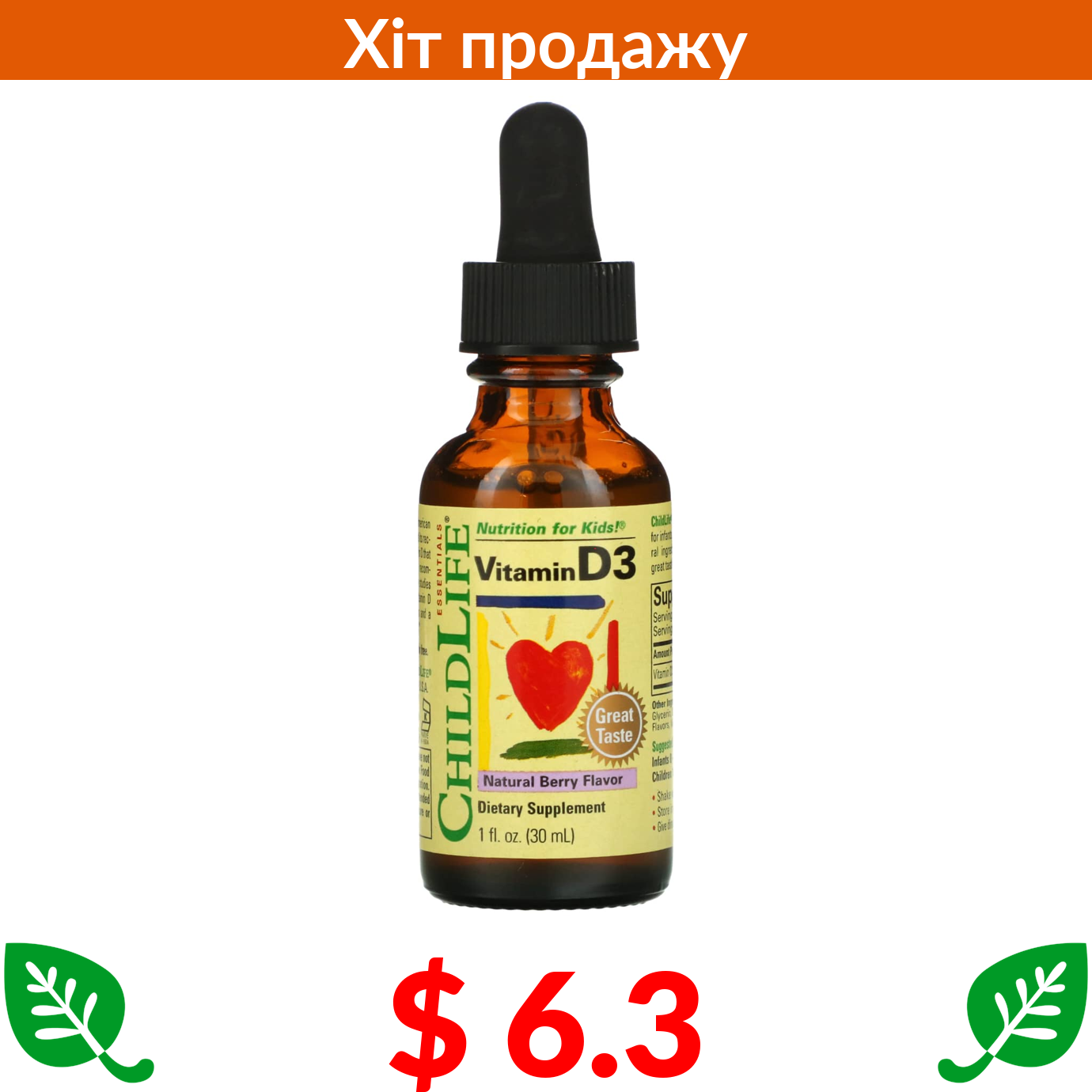 $ 6.3 ChildLife Essentials, вітамін D3, зі смаком натуральних ягід, 30 мл (1 рідк. унція)