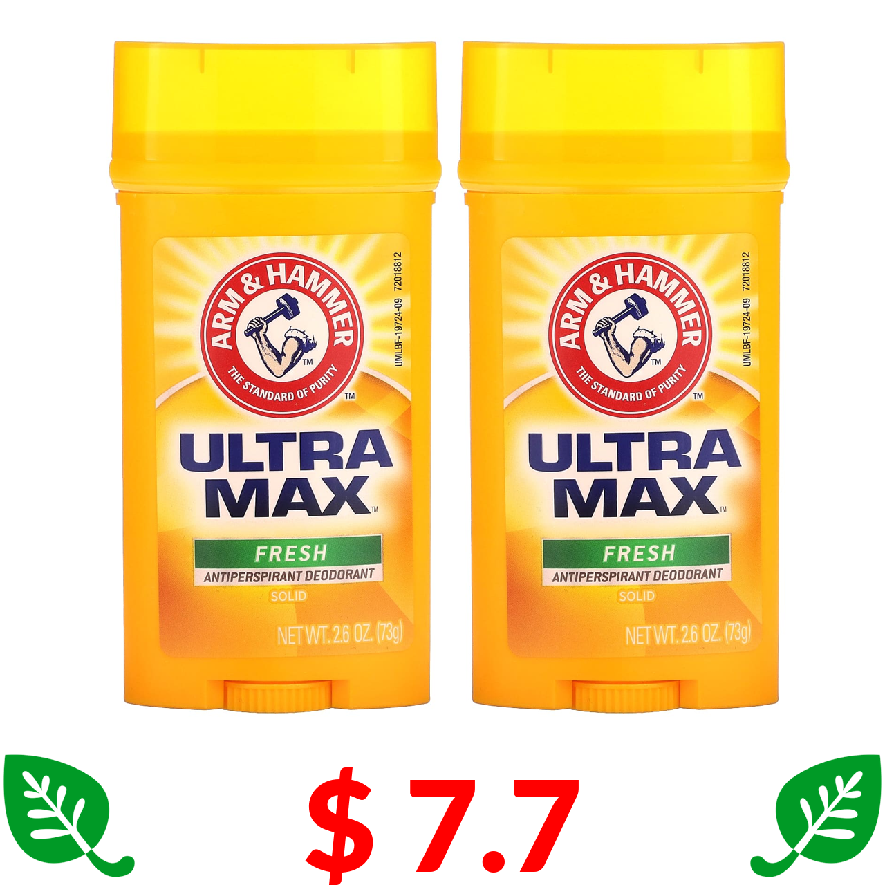 $ 7.7 Arm & Hammer, UltraMax, твердий дезодорант-антиперспірант для чоловіків, зі свіжим ароматом, подвійна упаковка, 73 г (2,6 унції) кожен