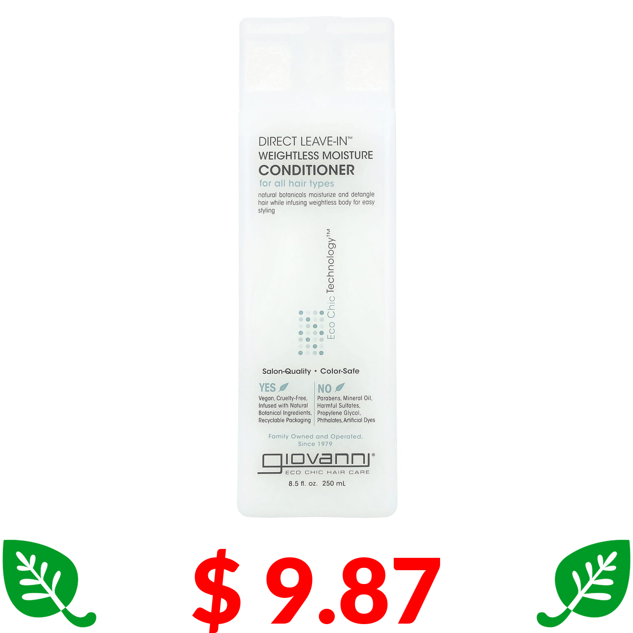 $ 9.87 Giovanni, Direct Leave-In, кондиціонер для невагомого зволоження, для всіх типів волосся, 250 мл (8,5 рідк. унцій)