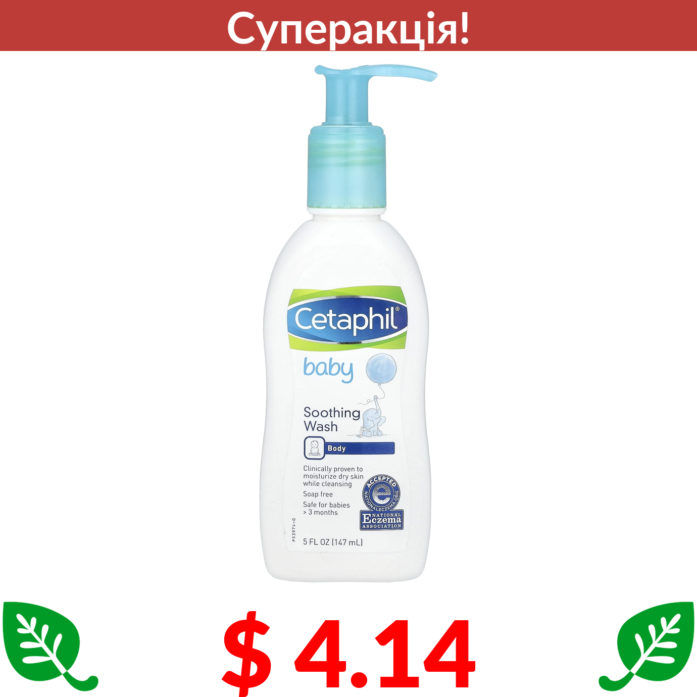 $ 4.14 Cetaphil, Baby, Заспокійливий засіб для вмивання, 5 рідких унцій (147 мл)