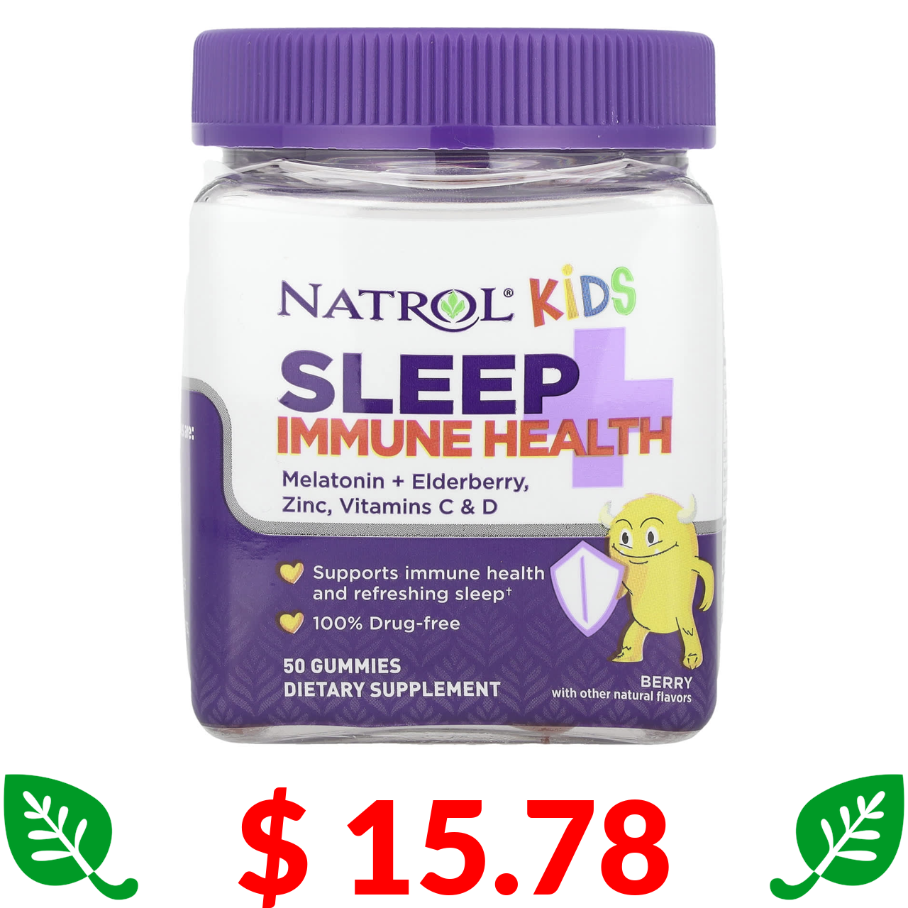 $ 15.78 Natrol, Kids, дитяча добавка для підтримки сну й імунітету, з ягідним смаком, 50 жувальних мармеладок
