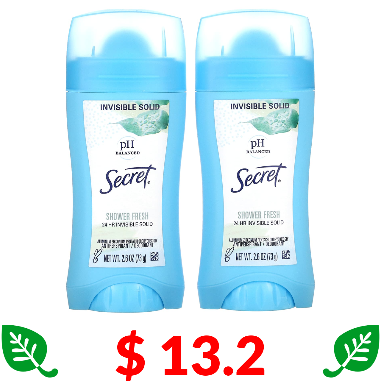 $ 13.2 Secret, антиперспірант/дезодорант із збалансованим рівнем pH, невидимий захист, свіжий аромат, два продукти, по 73 г (2,6 унції) кожний
