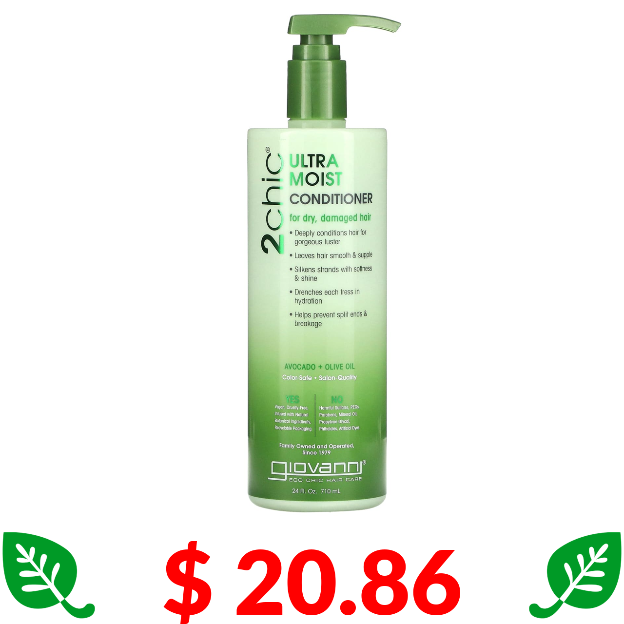 $ 20.86 Giovanni, 2chic, Ультразволожуючий кондиціонер, для сухого, пошкодженого волосся, авокадо + оливкова олія, 24 рідких унції (710 мл)