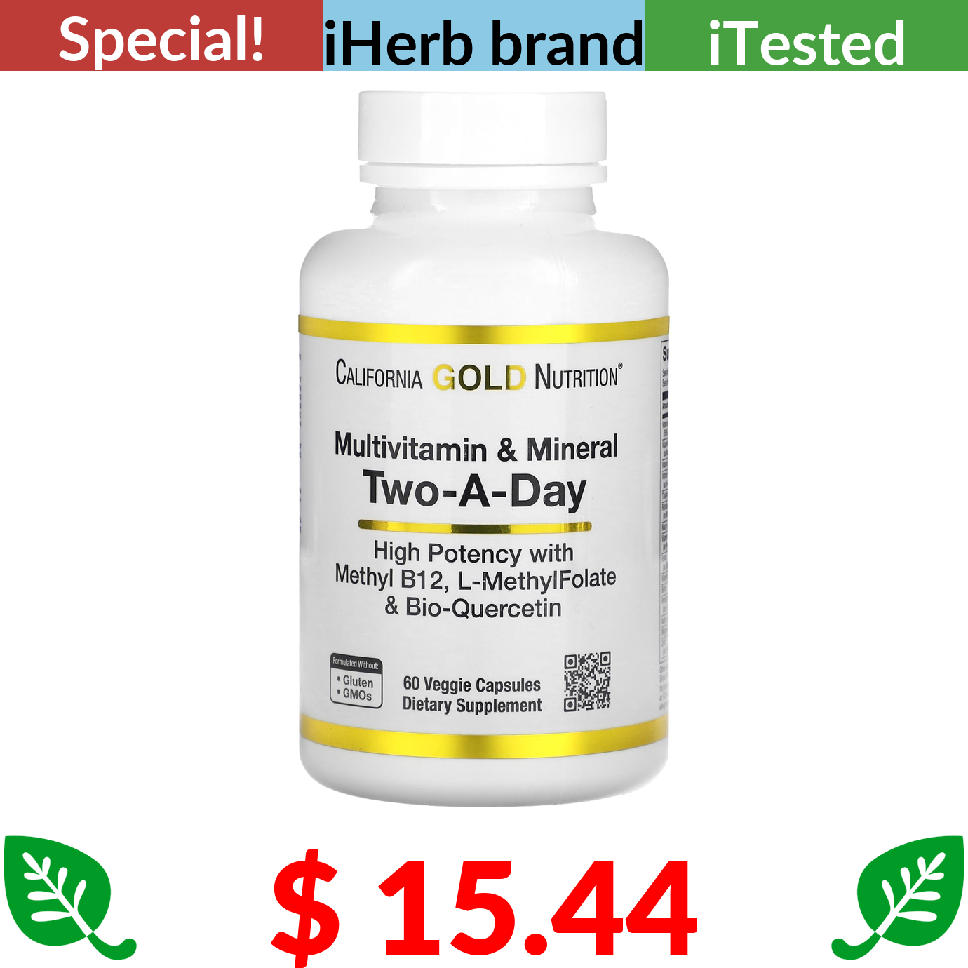 $ 15.44 California Gold Nutrition, Multivitamin and Mineral, Two-A-Day, 60 Veggie Capsules