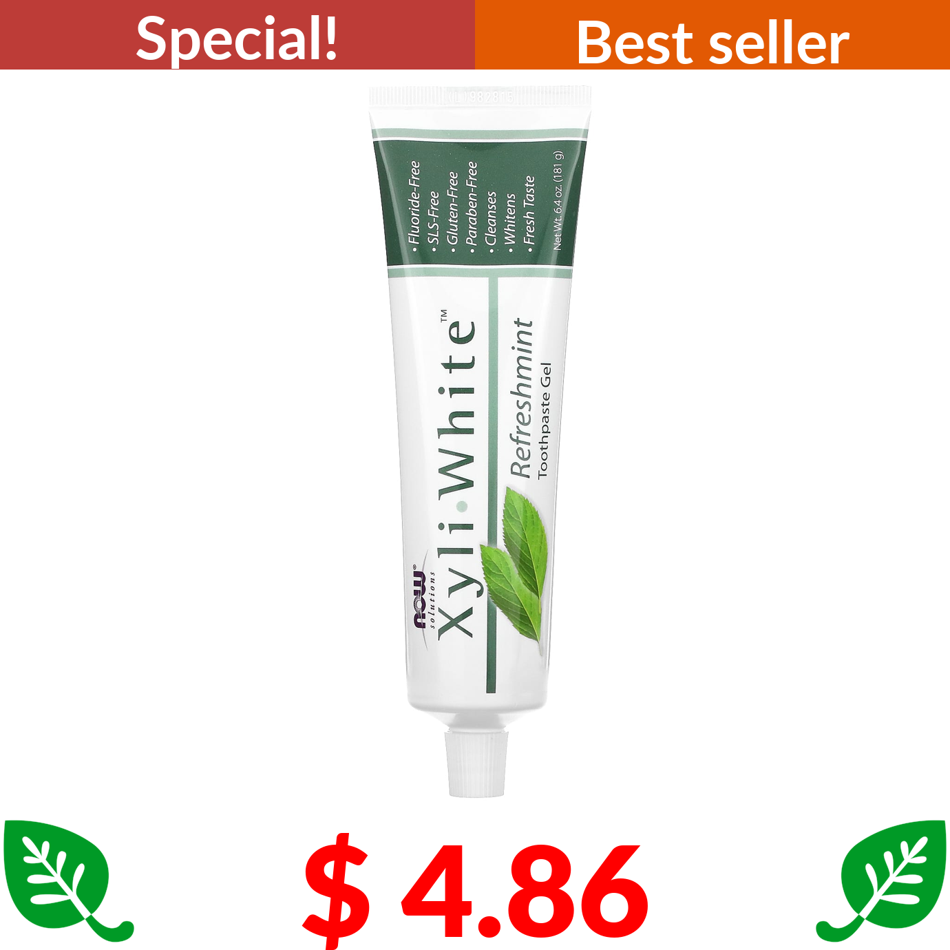 $ 4.86 NOW Foods, Solutions, XyliWhite, Toothpaste Gel, Refreshmint, 6.4 oz (181 g)
