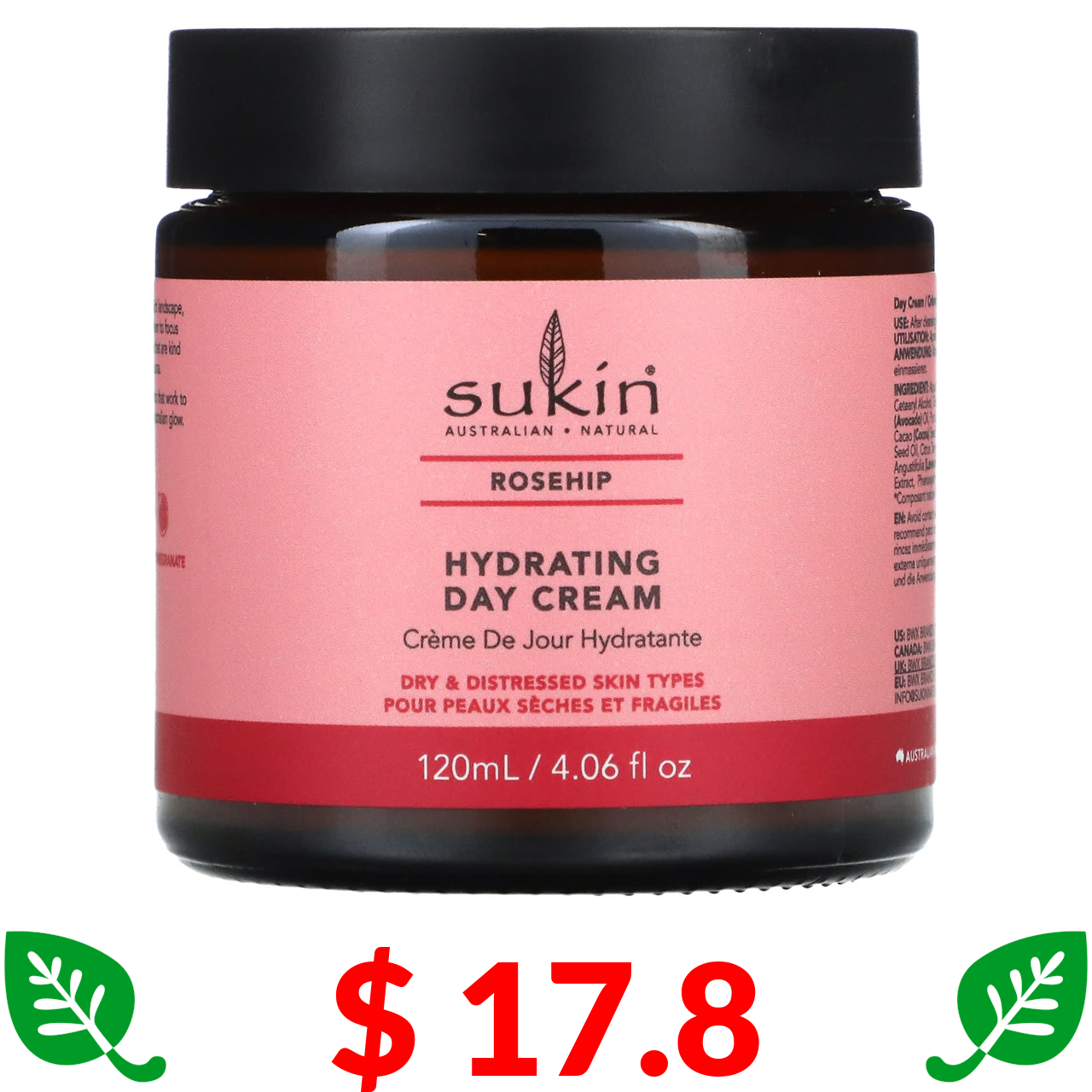 $ 17.8 Sukin, Hydrating Day Cream, Rosehip, 4.06 fl oz (120 ml)